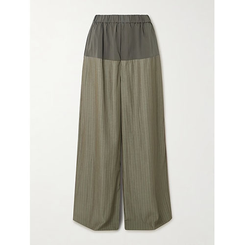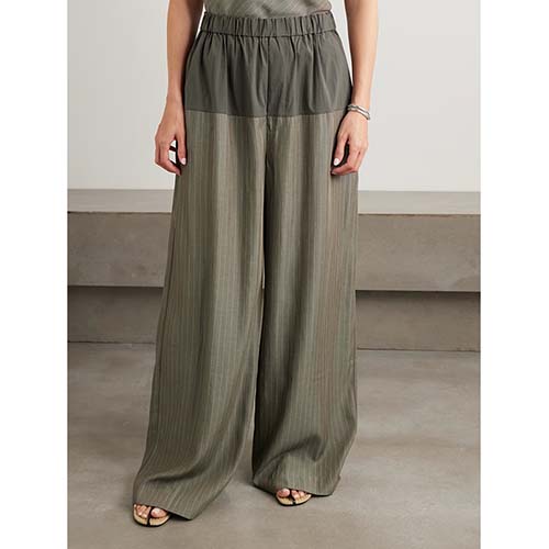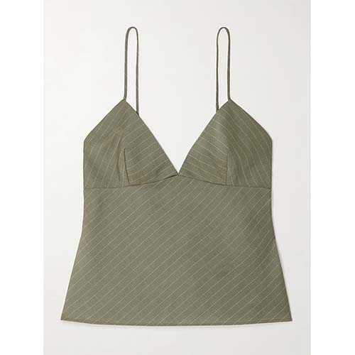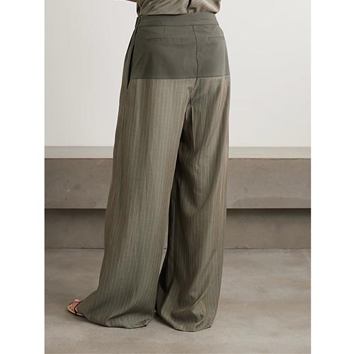 தையல் செய்யப்பட்ட ஆலிவ் பின்ஸ்ட்ரைப் கேமி & வைட்-லெக் பேண்ட்ஸ் செட்